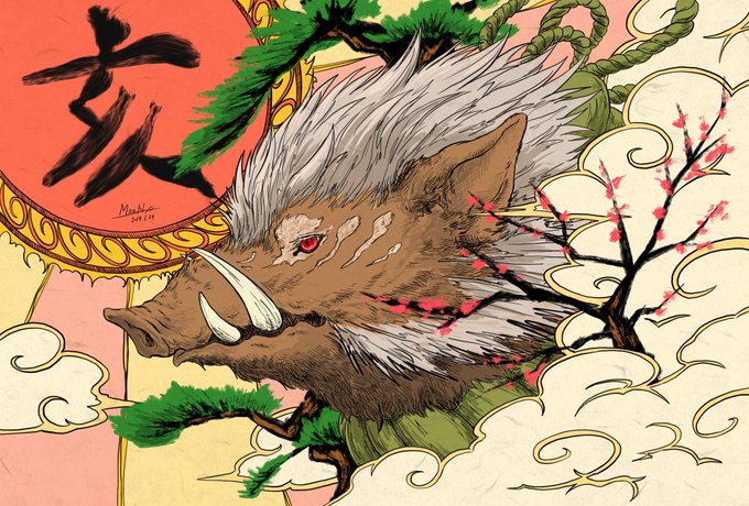 明日で今年が終わるので2019年の年賀絵を貼っておきます。