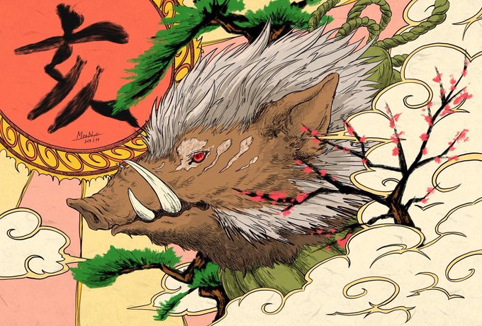 2018年戌年年賀と2019年亥年年賀のイラストを。 #mashiromoon_sousaku #年賀