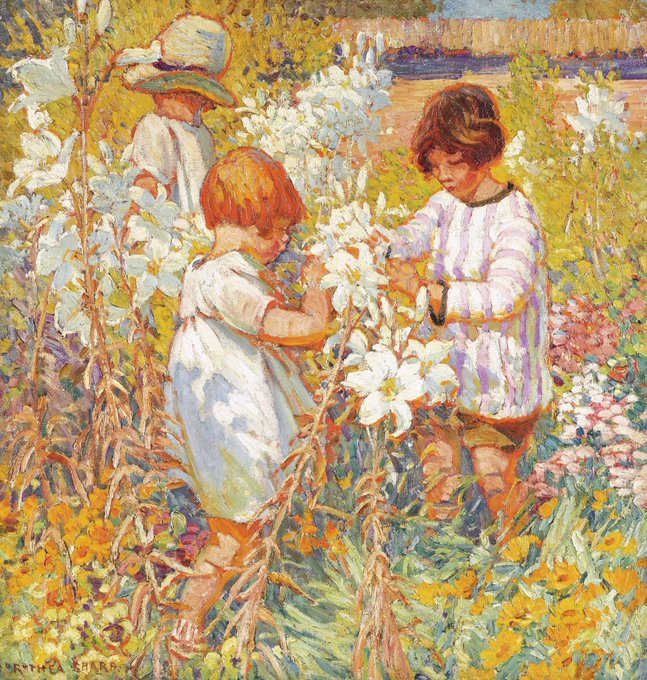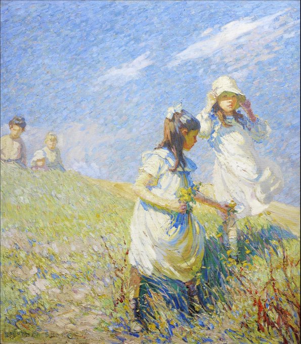 Dorothea Sharp (British artist) 1874 - 1955. The Wind on the Hill, oil on canvas. In the Lily Garden, 1901, oil on canvas. Cow Parsley, oil on canvas. A Summer's Day,