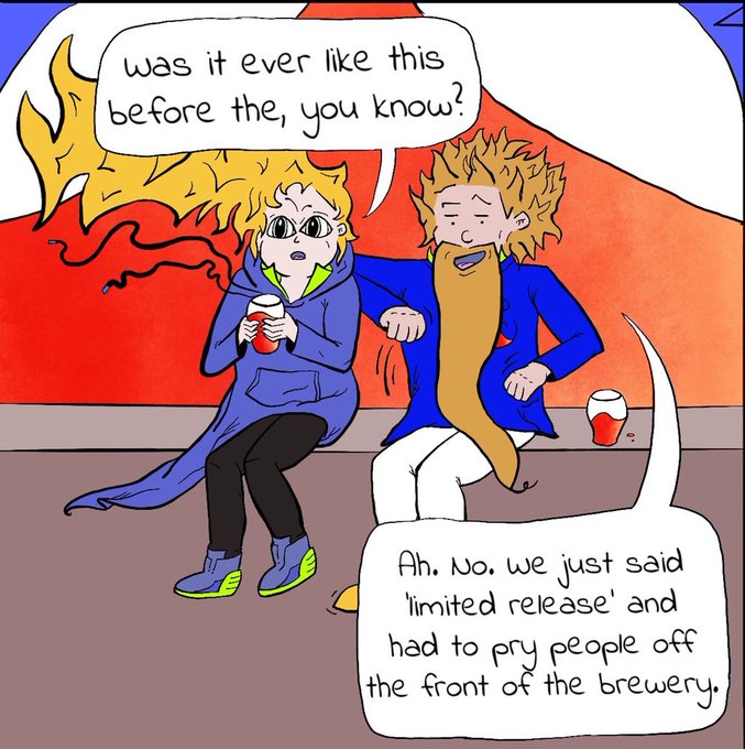 @webcomicchat Hey #WebComicChat / #WebcomicWednesday folks! I’m a beer writer who recently started up a 21+ #webcomic about a brewery at the end of the world. New issues land on Wednesdays. 🍻