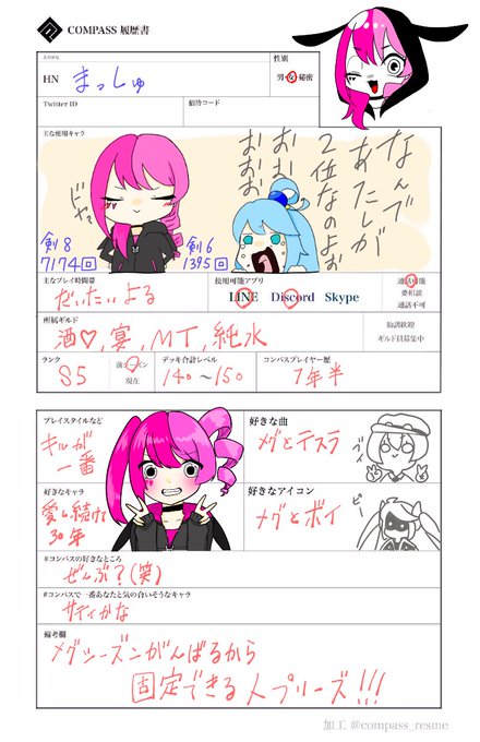 固定仲間求む!!!! メグシーズンがんばるど!!!! いいねで巡回いたす!! #コンパス #コンパス履歴書 #コンパス民と繋がりたい #コンパスお絵描き勢と繋がりたい
