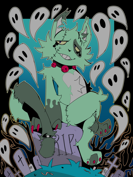 @pastaiils Not really a "zombie" really but he's pretty close to that. ^^ Here's my cute Frankenkitty, Patches! X3