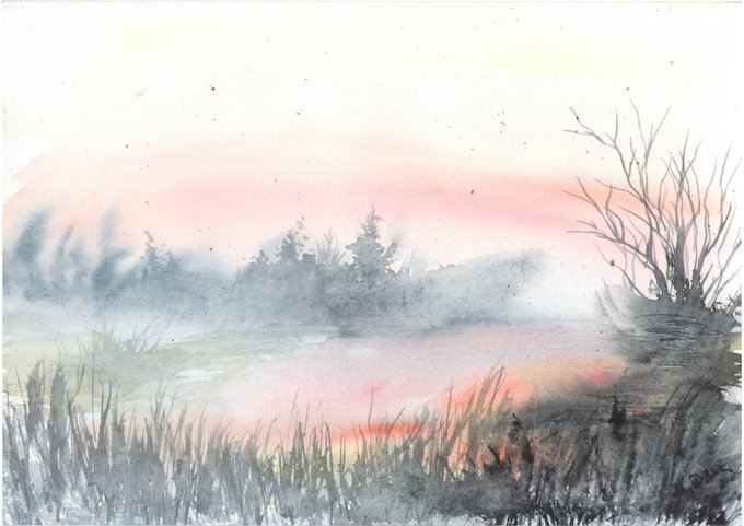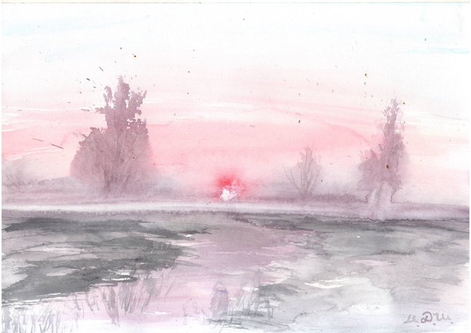 #акварель #пейзаж #современноеискусство #картинаакварелью #искусство #живопись #художник #watercolor #landscape #утреннийтуман #даль #nature #painting #art #drawing #artist #modernart #закат #весеннийпейзаж #утреннийпейзаж #вечернийпейзаж #весна #арт #современныйхудожник #весна