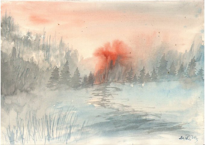 #акварель #пейзаж #современноеискусство #картинаакварелью #искусство #живопись #художник #watercolor #landscape #индиго #даль #nature #painting #art #drawing #artist #modernart #лес #закат #закатакварелью #мгла #зимнийпейзаж #зима #арт #современныйхудожник #зимакварелью #ночь