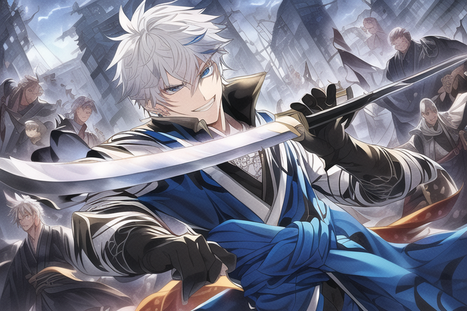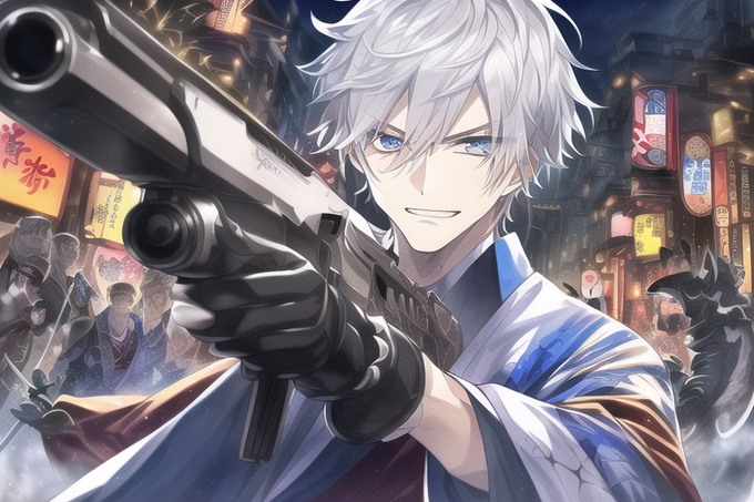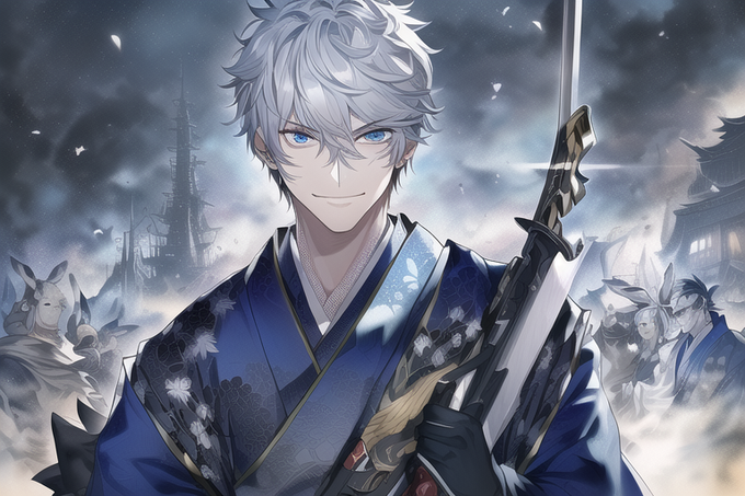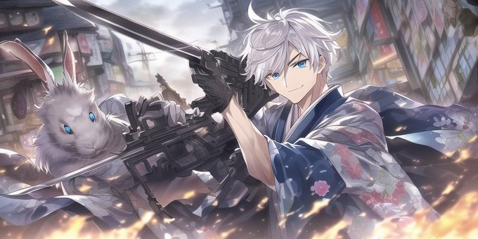 以前、教えていただいた細マッチョイケメンスナイパーに前に作った和風銀髪碧眼を足したら死ぬほど好みの画像が出て一人で悶えました!