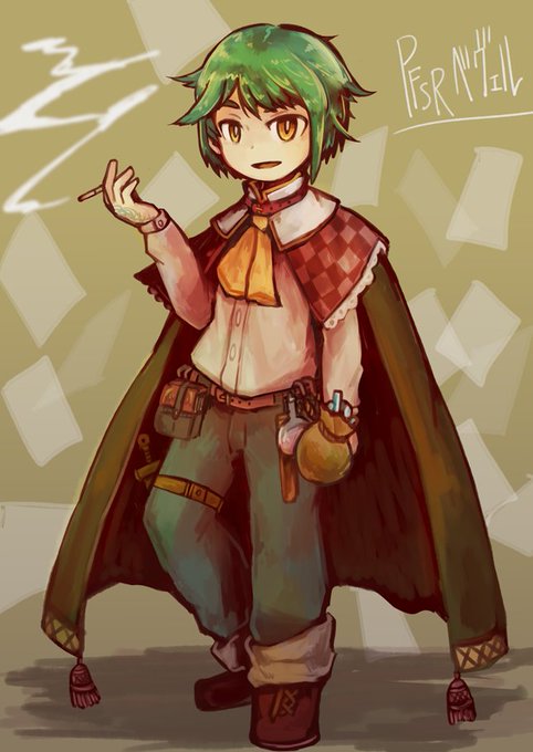 #万学 鳥介の私服とからくがき。あと描いてる途中で描ききるかわからん何か。ゆるゆるな性格なのでゆるゆるな服が好き。休日は寮の庭で大人しく本を読んでいる。本来カナリヤは臆病で人馴れしない性格なのでこれが彼の本来の姿なのかも。