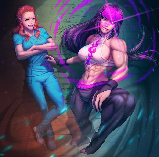 Hey, I got some new artwork done for the SF: Sidekick story (which you can read at FF through my bio link)! Another Juri/Kara piece done by the talented @ZombieMasta99! Kara's finally out of her nursing scrubs! I had another artwork done by him a while back. Here they are:
