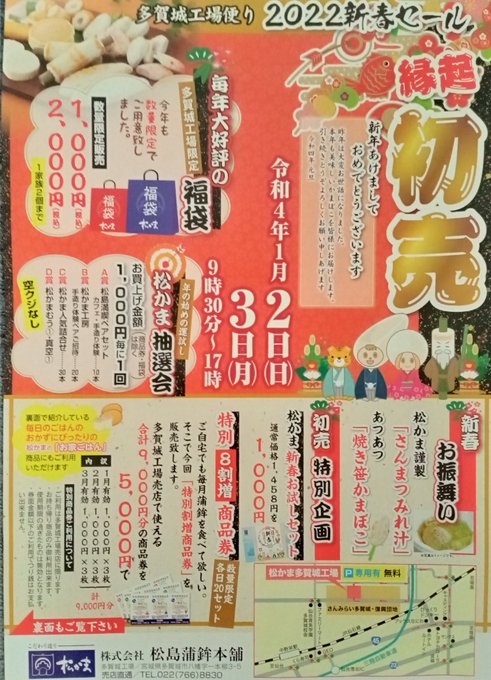 皆さま おはようございます🎍😊松かま 多賀城工場🏭売店 🎶✨初売✨🎶 お待ち申し上げております🎀🙇 雪道❄️ですので お越しの際は 運転やお足元 どうぞお気を付けて ご来店くださいませ🍀😌 #松かま #松島 #多賀城工場売店 #初売 #限定商品 #蒲鉾 #むう #福袋 #新春セット
