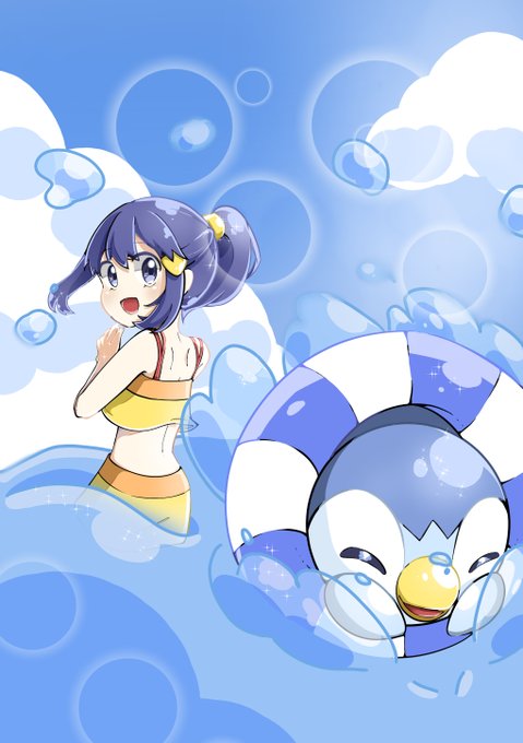 夏が近づいてきたので☀ #イラスト #ポケモン #ヒカリ #ポッチャマ