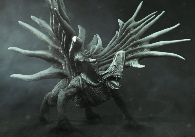 大獣帝グラナーガ 遥か昔に地球を支配していた怪獣。 ある地域では「すべての生命の祖である」という言い伝えがある。 #matsutomogiga #怪獣 #ZBrush