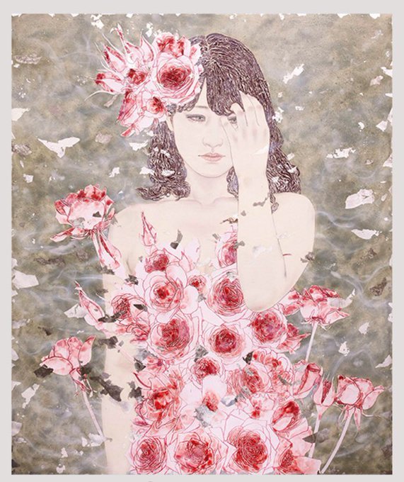 【The Secret Rose Garden 平田望 日本画展】本日より開催🎉幻想世界の中に住む美しい女性像を描いています🎨作家は毎日在廊予定です。地元の若手作家さんです、ぜひご来廊ください✨7/3(火)まで【本館8階 第二画廊】 #松坂屋美術画廊 #松坂屋名古屋店