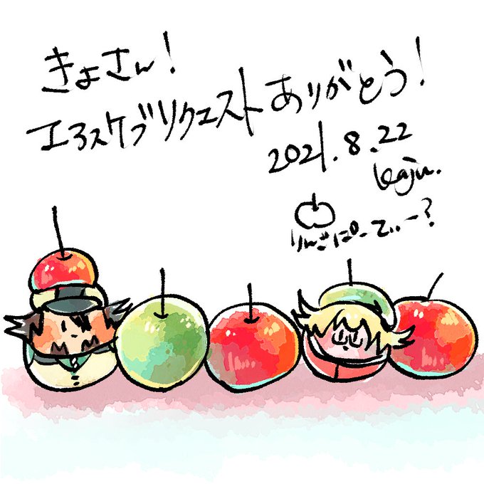 @kiyo_t_eden きよちゃん!エアスケブリクエストありがとう!!!アップルパーティーにした!!!!!ころバディは完全に擬態できてるっておもってるよ!!!💕🍎🍏💕