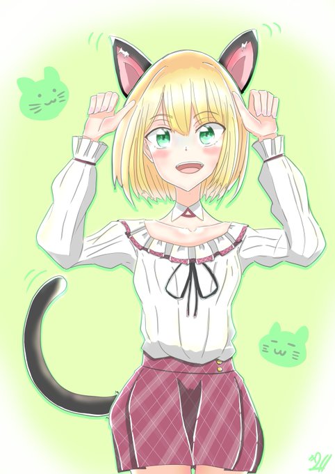 アキ君初描き! 瞳が宝石みたいに綺麗…エメラルドキャッツアイ! #アキくんちゃんアート #にじさんじ