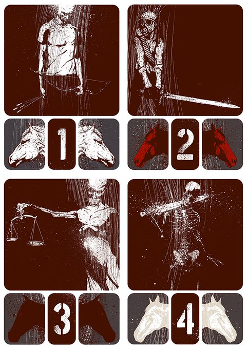 Revisiting these previous pieces of the 4 Horsemen I did awhile back for inclusion in a comic. I was always quite fond of these designs so it'll be fun to expand on them a bit.