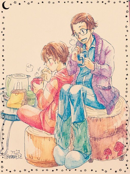 昨夜あまがさセンセ(@amagasa333)がつぶやいてた、ココアを練るのが上手な太子と、練るのが下手でダマになっちゃう妹子ってのが大変可愛かったので勝手に絵にしてみました。一緒に住んでるの?ふふ…(*´꒳`*)