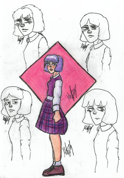 Dibujos de mi OC (original character y personaje original en español), hice la pura cara para una página, pero me gustó mucho y le di un cuerpo y ropa uwu
