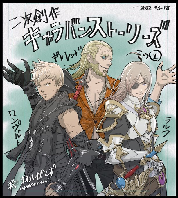 久し振りに二次お絵かきしました。いま三周年祭りやってるキャラバンストーリーズの最強に好きな3キャラ、ロンヴァルト、ラルフと二人の師匠のギャレッド。2年くらい続けてラルフトロンは既にうちのエース!師匠はまだ仲間になったばかり。