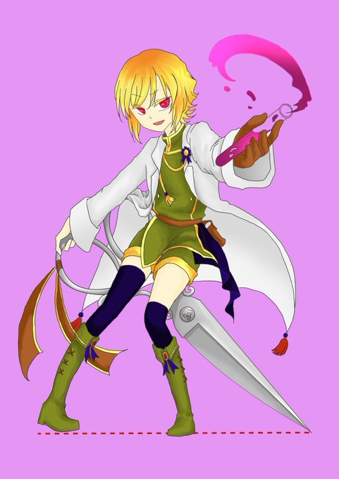 裁ち鋏が武器。分解して、双剣にすることもできる。父譲りの毒舌に母の探究心が合わさった自信家。どこかの国の王子様らしい。いろんな薬品を作ることができるが、回復薬だけは作れない。