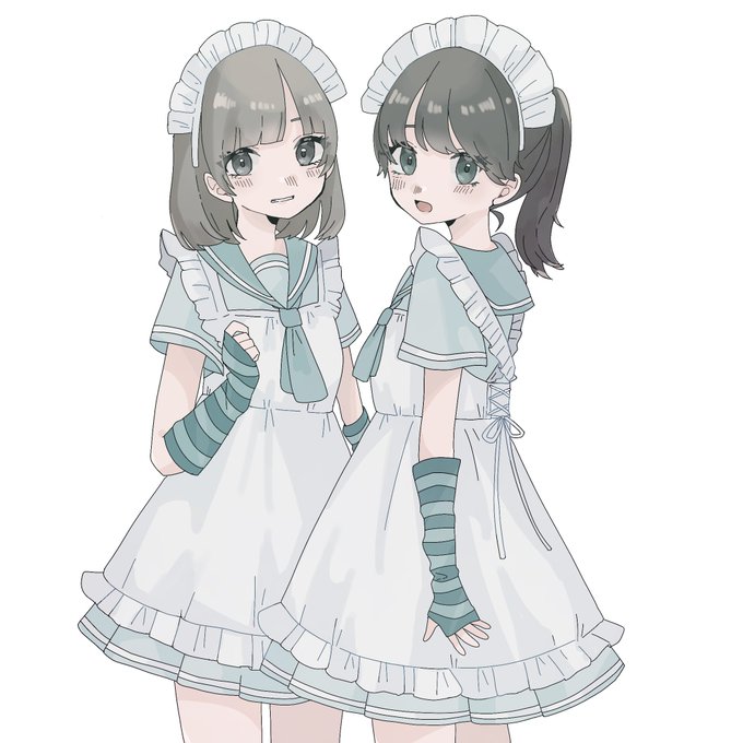 文字入れて色いじる前の! 鏡の中がパレットの制服で鏡の外が喫茶冥土さんの制服🫶 週末が楽しみだね〜