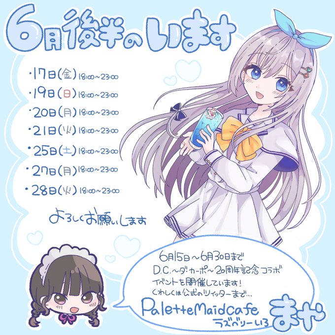 6月後半はこんな感じで居ます〜 6月15日〜30日までD.C.〜ダ・カーポ〜20周年コラボイベントです🌸