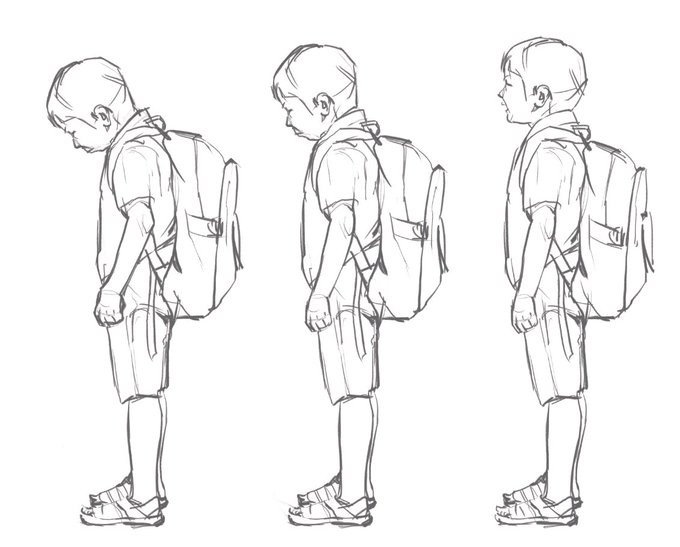 リュックサックを背負う男の子。 色とかシワとか。 #水彩画 #朝活