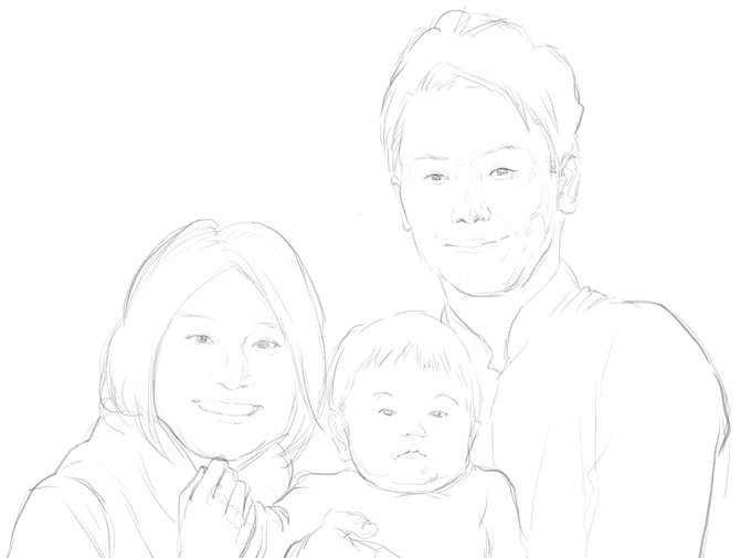 家族をテーマに描いてみた。3人分は物理的に時間がかかり色まで辿り着けず。続きは明日! 張り切ってるママ、ちょっと笑顔が硬いパパ、マイペースなこども。そんな家族を想像してみた。 #朝活 #線画 #途中経過 #家族 #イラスト #イラスト好きな人と繋がりたい #フォローしてくれたら嬉しいです