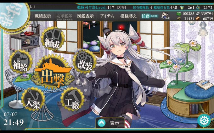 天津風改二! 地味に母港に置くと頭の煙突のところの煙が動いてる