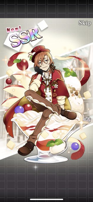 step3すり抜け😭step4で中也さん〜!ありがとう!洋菓子なシルクハットめっちゃよくお似合いです〜🎩🍎