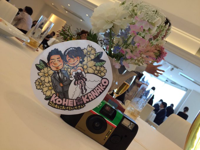 昭和の日のゴーゴー喫茶再現イベントのグルーヴサウンズ!に行ってくるよい!グルーヴサウンズ!仕様のまよきち屋の名刺を声かけてくださった方に差し上げるでございます!ホーロー鍋柄のイヤリングと白いこん色の花ワンピースを着ているのがまのひとですぞ!