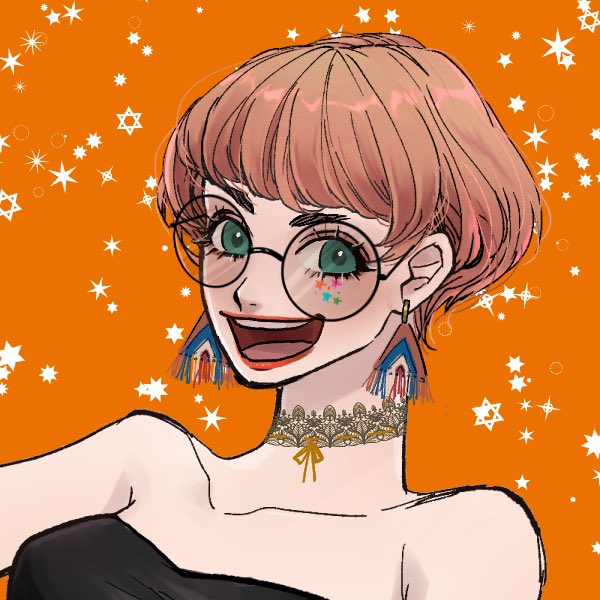 らんすたんー🧡元気っ子でスバルとか神楽のイメージだからオレンジ系の髪色にした🍊あと丸眼鏡似合うよね👓💓