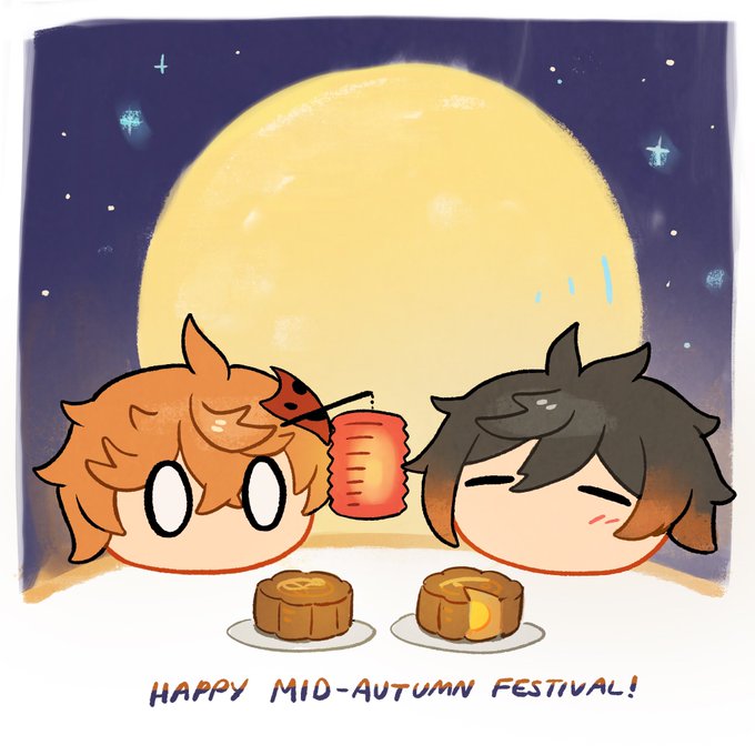 Happy mid autumn festival from Zhongli and Childe slime! 🌕 #MidAutumnFestival #genshinimpactfanart #tartali #タル鍾