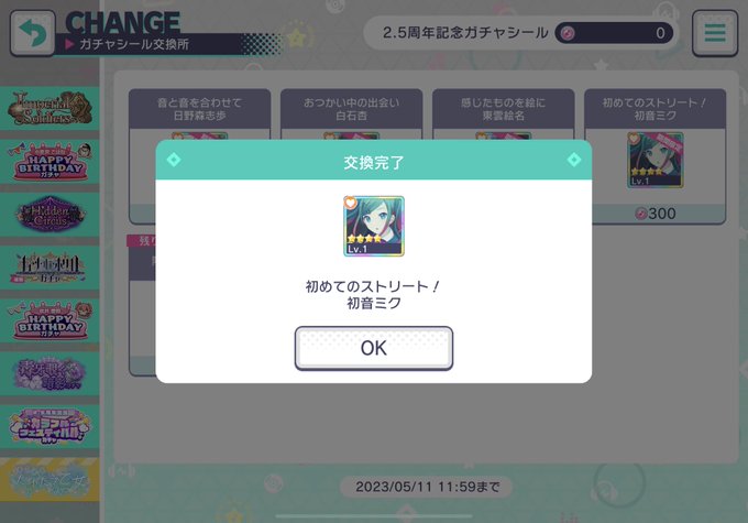 ミクぴょんは天井でお迎えする事になっちゃったけど今回のピックアップ志歩ちゃん以外は全員確保できたのは嬉しい🤗