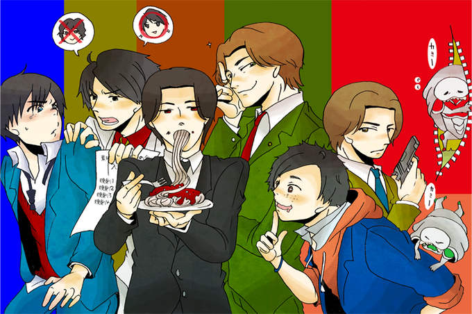 かなり前に流行ったスーツ着せて色塗らずに今すぐ並べて描くんだ、のタグのやつを今さら描いた 翔一、映司、チェイス、たっくん、真司、翔太郎 さあ誰が誰かな!?