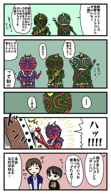 #自作の好きな絵1枚貼って5人指名する ドランくん【@iroiro_pinchi】がくれた~!何個かあるから一年近く昔のやつから引っ張ってきたクウガ絵と響鬼漫画