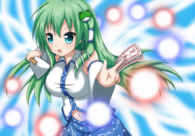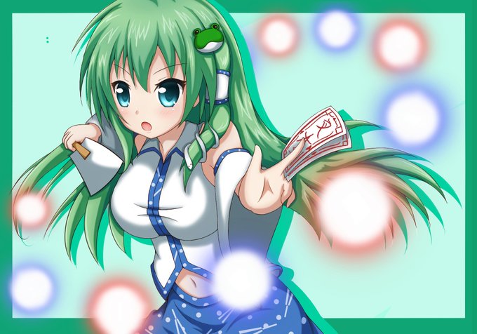 昨日の早苗さん サイズ小さくしすぎて変になってたっぽい? 後ろ色々変えたけどやっぱ景色描きたいなー