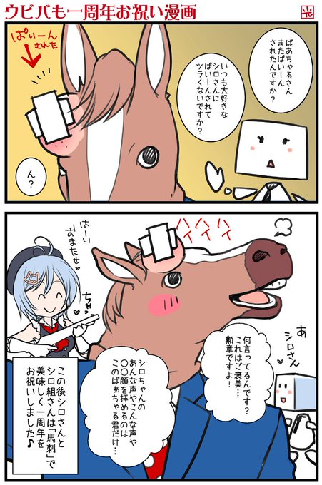 馬も(体で)祝いたい一周年まんが! 描いてるうちに朝になっちゃった!(朝から)ゴメン! #ばあちゃる #SiroArt