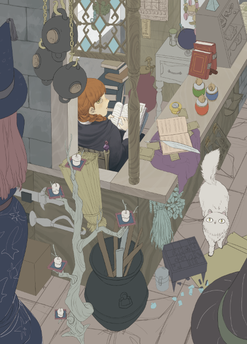 「なあ、その口ちょーっと開けてくれるだけでいいから!な?」「…」「…チッ。ケチ。トカゲ。バーカバーカ」「…」(イラッ)と言うやり取りを百年くらい続けている封印された魔術書と信頼ある使い魔 #ファンタジー深夜の真剣お絵描き60分一本勝負