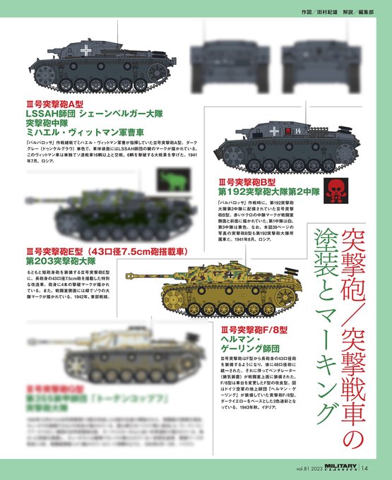 第1特集はⅢ号/Ⅳ号突撃砲、突撃榴弾砲42、突撃歩兵砲33、Ⅳ号突撃戦車などドイツ突撃砲と突撃戦車。