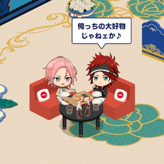こはくちゃんが配達してくれたピザ🍕 燐音が取り分けててかわいい
