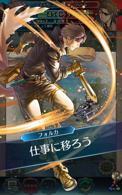 奥義3 〃 エリンシア(3000G未所持) お金ですか……いますぐそれだけの大金をご用意することは…… フォルカ ●ならば、《話は終わりだ》。 エリンシア あ!………… 奥義4 〃 対イズカ ひぃっ!き、貴様は……! フォルカ ●……《闇に堕ちろ》。 イズカ な…“なりそこない”を……!もっと…!!