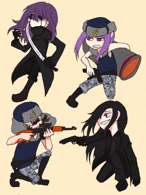 #私のイラストに書き込んで褒めて欲しい 民警VS殺人鬼(擬人化 コプボリ(擬人化 ネンコ兄弟 ショケイスキー(擬人化
