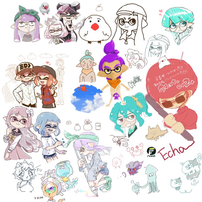 最近描いたものまとめ (ゆしれさんとうりしゃりのこしパンあげパンフェス/そうめんさんのタコガール/イカップル杯様の賞品イラスト/リクエストで描いたエルマさん)