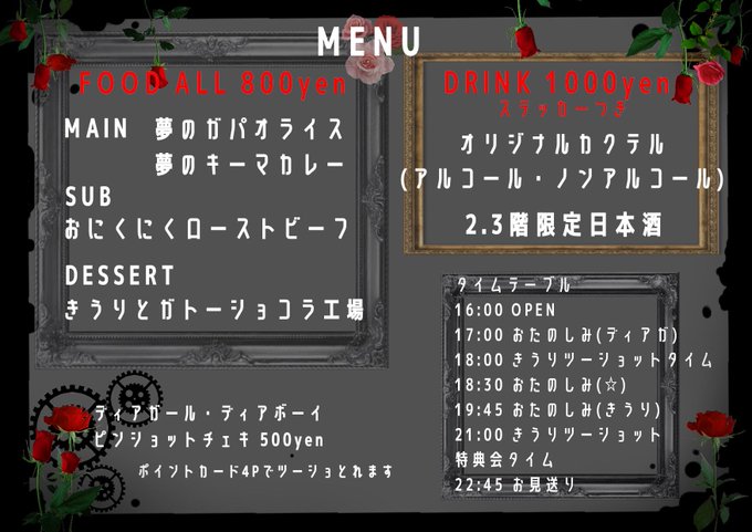メインにキーマカレーがプラスされたのとアクキーの値段が値上がりした為HP記載と違います、すみません…(´;︵;`)