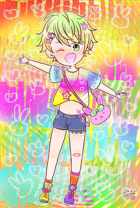 見てっ!私の線画をてれぺが塗ってくれた!!!!夢のようや〜😭🥰😭🥰自分の絵なのに可愛くなってる!!てれぺのポップさがたまらない♡可愛くしてもらえてしあわせ!!!