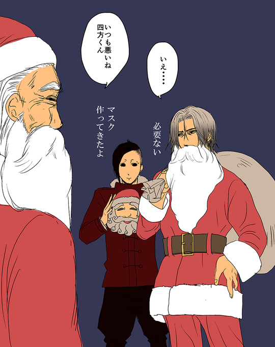 20区に住む喰種の子供たちに、あんていくからのプレゼントを配る芳村サンタと四方サンタ、、、ついでに投票用イラストも投稿してきた(白目)色ちゃんと塗る余裕はなかったよお、、、 http://t.co/K1G8Mo45rs