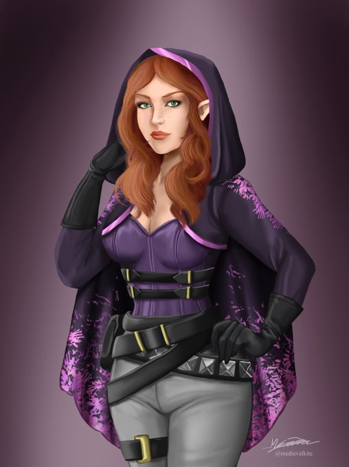Another character art out the door, meet Tisiphone! She's a Dark Elf (Kryn) chronurgist for a Critical Role based campaign. She's going to be a fun one to play, very different than my normal archtypes. #dungeonsanddragons #characterart #commissionsopen