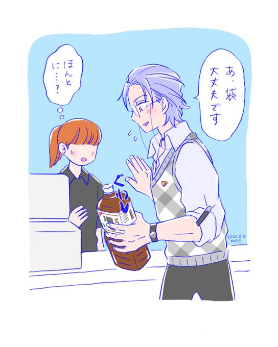昼休みにコンビニで、まるで500mlみたいに2リットルのお茶を素手で持って帰るサラリーマンのお兄さん見かけたのでらくがき!袋お金かかるもんね