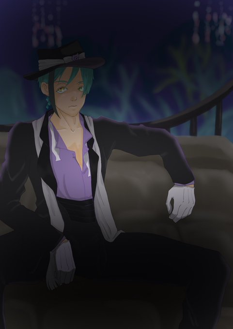 夜あげ…夢中になってたらもうこんな時間😓 #ツイステファンアート #twstファンアート #フロイド・リーチ