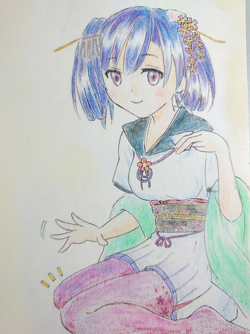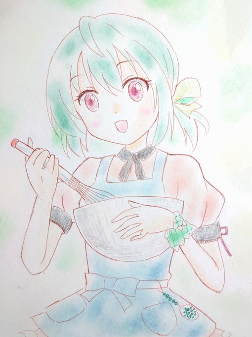 夜中3時前に目が覚めて、皆様に続いてan寿anさんのエプロン樹紀ちゃんの落描きしてました💧 おはようございます🙂 #南紀勝浦樹紀 #温泉むすめ #an寿an