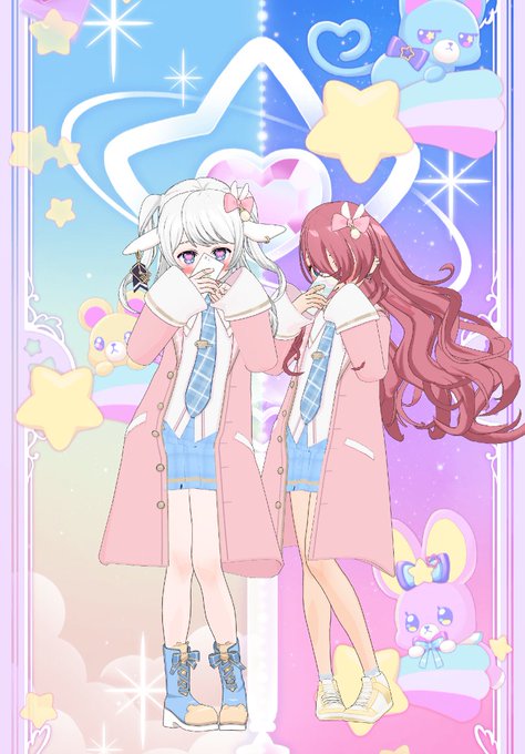 ひつじちゃんと!お揃いの衣装にお揃いのポーズ🛁*。♡ https://t.co/VTurnGc8il #ミラティブ #エモモ #配信 中!